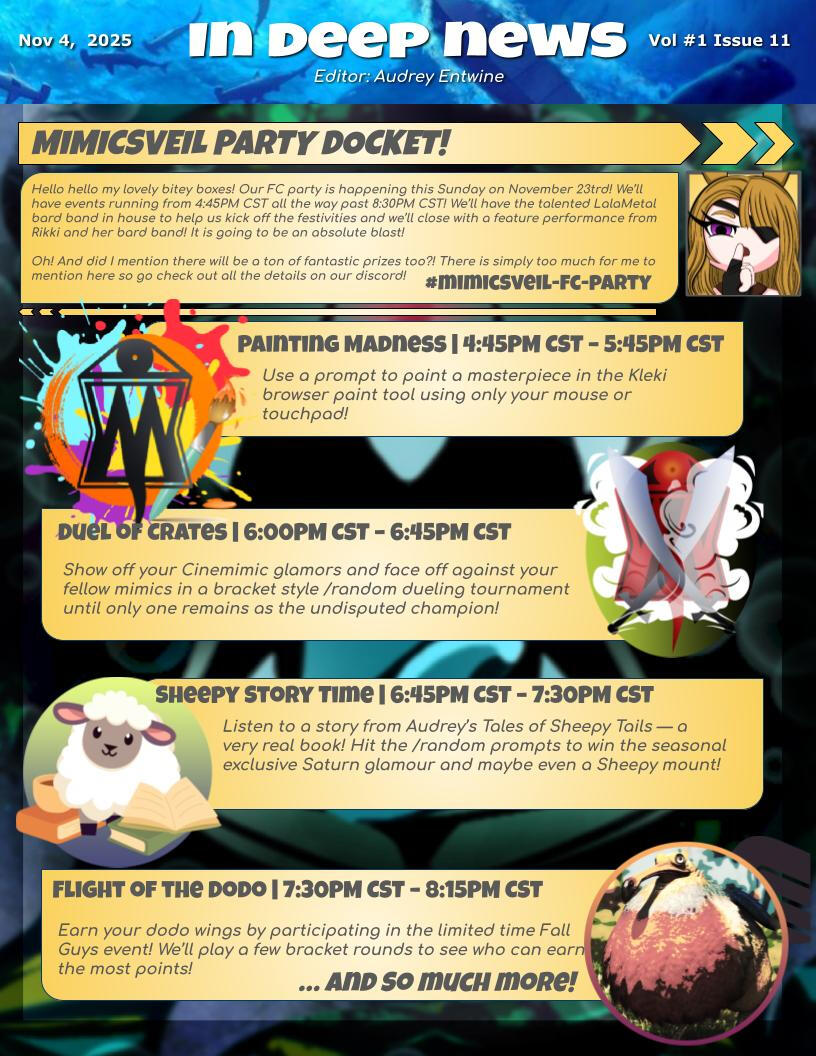 Final Fantasy is a fantastic MMO loaded with content -- but what truly makes it special is having friends to explore it with!As a MIMIC, you'll find a supportive community to belong to, both in game and out. Together, we can make this truly memorable experience!Add your character to our story and help us craft an amazing narrative!